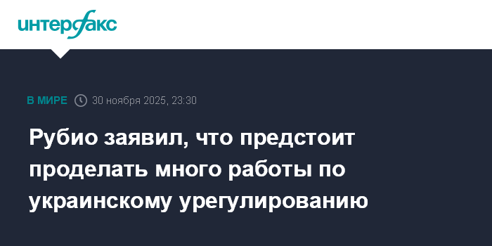 Москва. 30 ноября. INTERFAX.RU - Завершение конфликта на Украине является сложной задачей и для ее решения предстоит проделать много работы, заявил госсекретарь США Марко Рубио по итогам переговоров американской и украинской делегаций во Флориде.