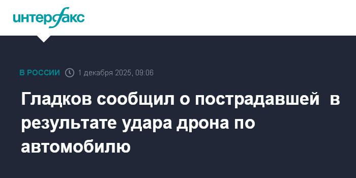 Гладков сообщил о пострадавшей в результате удара дрона по автомобилю