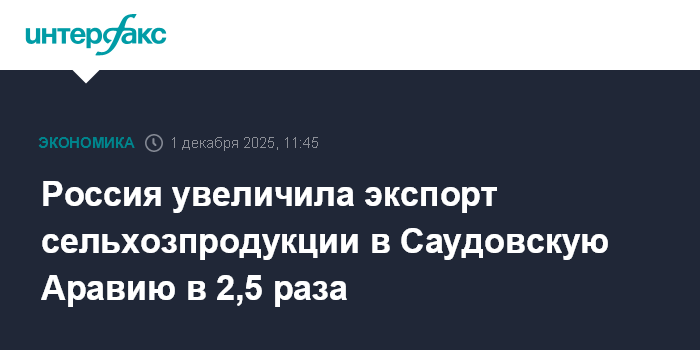 Россия увеличила экспорт сельхозпродукции в Саудовскую Аравию в 2,5 раза