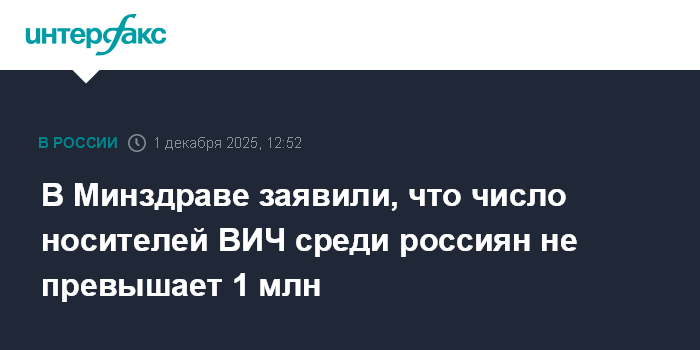 В Минздраве заявили, что число носителей ВИЧ среди россиян не превышает 1 млн
