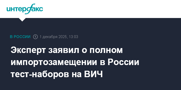 Эксперт заявил о полном импортозамещении в России тест-наборов на ВИЧ