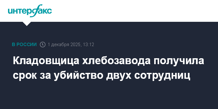 Кладовщица хлебозавода получила срок за убийство двух сотрудниц