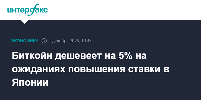 Биткойн дешевеет на 5% на ожиданиях повышения ставки в Японии