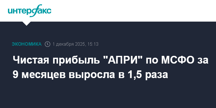 Чистая прибыль "АПРИ" по МСФО за 9 месяцев выросла в 1,5 раза