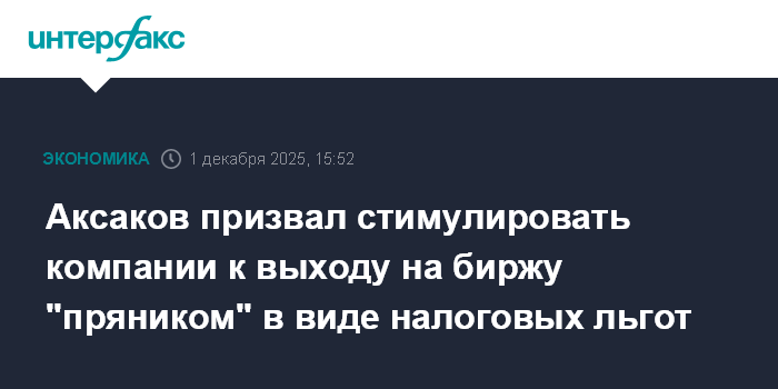 Аксаков призвал стимулировать компании к выходу на биржу "пряником" в виде налоговых льгот