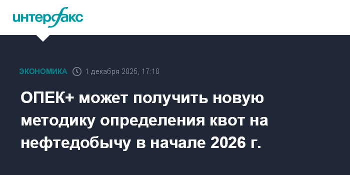 ОПЕК+ может получить новую методику определения квот на нефтедобычу в начале 2026 г.