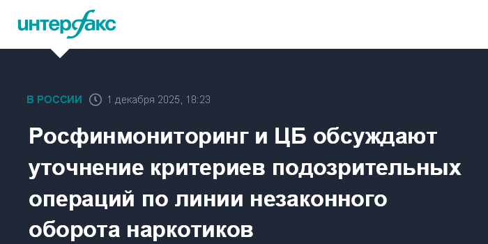 Москва. 1 декабря. INTERFAX.RU - Росфинмониторинг и ЦБ обсуждают уточнение действующих критериев подозрительных операций по линии незаконного оборота наркотиков, а также дополнение перечня новым критерием, сообщили "Интерфаксу" в пресс-службе Росфинмониторинга.