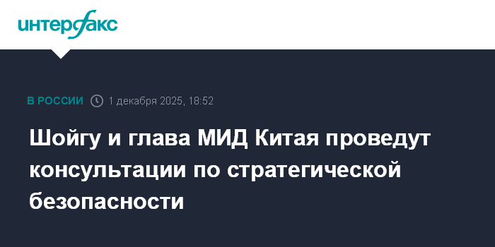 Шойгу и глава МИД Китая проведут консультации по стратегической безопасности