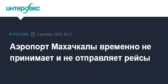 "Аэропорт Махачкала (Уйташ). Введены временные ограничения на прием и выпуск воздушных судов", - написал он во вторник в своем телеграм-канале.