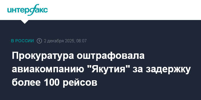 Прокуратура оштрафовала авиакомпанию "Якутия" за задержку более 100 рейсов