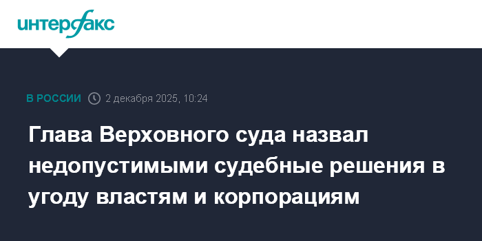Глава Верховного суда назвал недопустимыми судебные решения в угоду властям и корпорациям