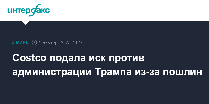 Москва. 2 декабря. INTERFAX.RU - Costco Wholesale, оператор крупнейшей в США сети клубных магазинов-складов, подал в Суд по международной торговле США иск против администрации президента Дональда Трампа в связи с тарифами, установленными на основании закона о чрезвычайных экономических полномочиях.