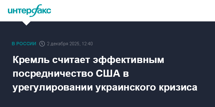 Кремль считает эффективным посредничество США в урегулировании украинского кризиса
