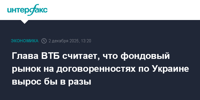 Глава ВТБ считает, что фондовый рынок на договоренностях по Украине вырос бы в разы