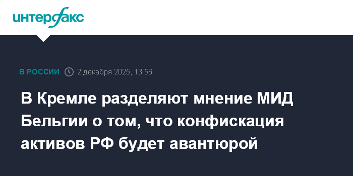 В Кремле разделяют мнение МИД Бельгии о том, что конфискация активов РФ будет авантюрой