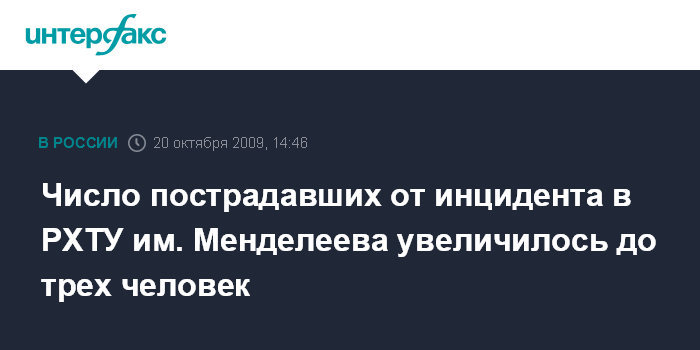 Число пострадавших от инцидента в РХТУ им. Менделеева увеличилось до трех человек