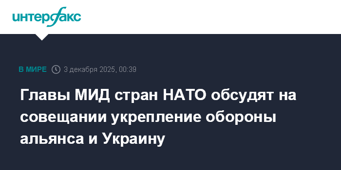 Москва. 3 декабря. INTERFAX.RU - Министры иностранных дел государств НАТО проведут в среду в Брюсселе совещание под председательством генерального секретаря Североатлантического альянса Марка Рютте.