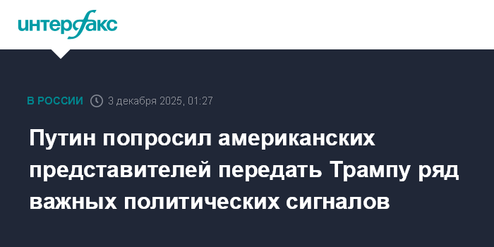 Путин попросил американских представителей передать Трампу ряд важных политических сигналов