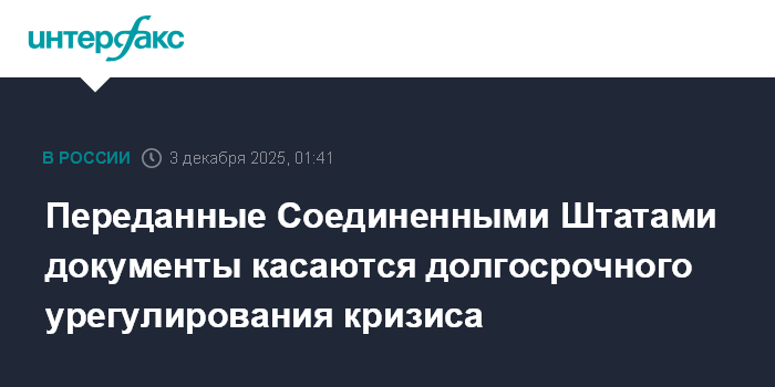 Переданные Соединенными Штатами документы касаются долгосрочного урегулирования кризиса