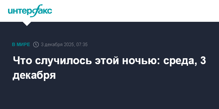 Москва. 3 декабря. INTERFAX.RU - Краткая сводка событий, произошедших к утру:
