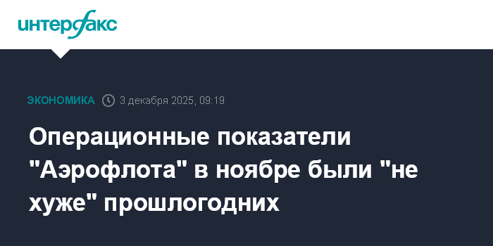 Москва. 3 декабря. INTERFAX.RU - Операционные показатели группы "Аэрофлот" в ноябре 2025 года были "не хуже", чем годом ранее, сообщил журналистам в кулуарах форума ВТБ "Россия зовет!" гендиректор компании Сергей Александровский.
