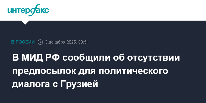 "Предпосылки для возобновления политдиалога России с Грузией отсутствуют, поскольку Тбилиси придерживается занятой еще режимом (экс-президента Грузии Михаила - ИФ) Саакашвили позиции об увязке возобновления дипотношений с отказом России от признания Абхазии и Южной Осетии. Это ущербное для самой Грузии и нереалистичное требование. Москвой подчеркивалось, что решения о признании государственности республик необратимы", - заявили изданию в МИД РФ.