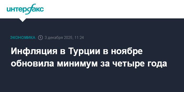 Инфляция в Турции в ноябре обновила минимум за четыре года