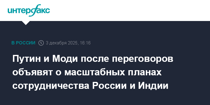 Путин и Моди после переговоров объявят о масштабных планах сотрудничества России и Индии