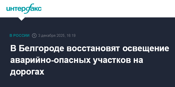 Москва. 3 декабря. INTERFAX.RU - Мэрия Белгорода совместно с энергетиками займется восстановлением уличного освещения в районе аварийно-опасных участков дорог, сообщил в Telegram мэр города Валентин Демидов.