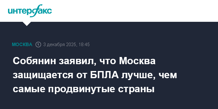 Москва. 3 декабря. INTERFAX.RU - Мэр Москвы Сергей Собянин заявил, что Москва защищается от атак БПЛА лучше, чем самые продвинутые страны.