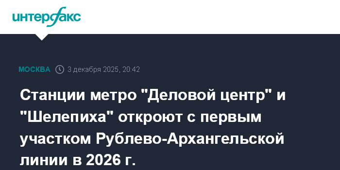 Москва. 3 декабря. INTERFAX.RU - Первый участок Рублево-Архангельской линии столичного метро и станции "Шелепиха" и "Деловой центр", которые закрылись для пассажиров в 2024 году, планируют открыть в следующем году, сообщил мэр Москвы Сергей Собянин.