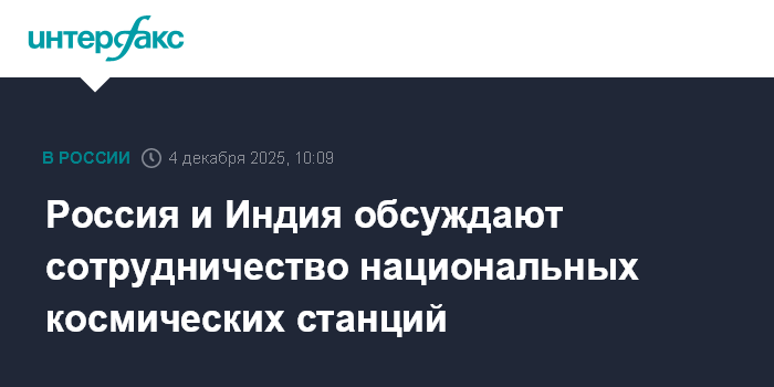 Москва. 4 декабря. INTERFAX.RU - Россия и Индия обсуждают сотрудничество между национальными орбитальными станциями, которые сменят МКС, заявил Первому каналу глава "Роскосмоса" Дмитрий Баканов.