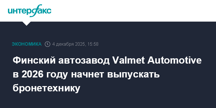 Москва. 4 декабря. INTERFAX.RU - Расположенный в городе Уусикаупунки финский автозавод Valmet Automotive и оборонная компания Patria подписали договор о совместном производстве бронетехники, заявил Valmet.