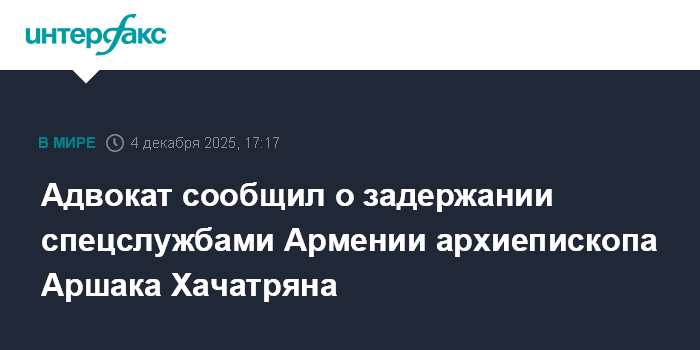 Адвокат сообщил о задержании спецслужбами Армении архиепископа Аршака Хачатряна