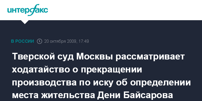 Тверской суд Москвы рассматривает ходатайство о прекращении производства по иску об определении места жительства Дени Байсарова