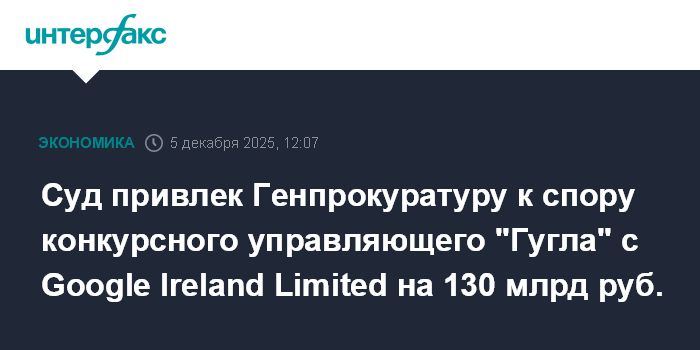 Суд привлек Генпрокуратуру к спору конкурсного управляющего "Гугла" с Google Ireland Limited на 130 млрд руб.
