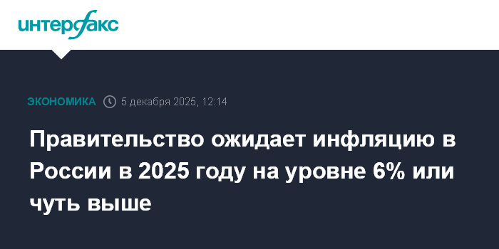 Правительство ожидает инфляцию в России в 2025 году на уровне 6% или чуть выше