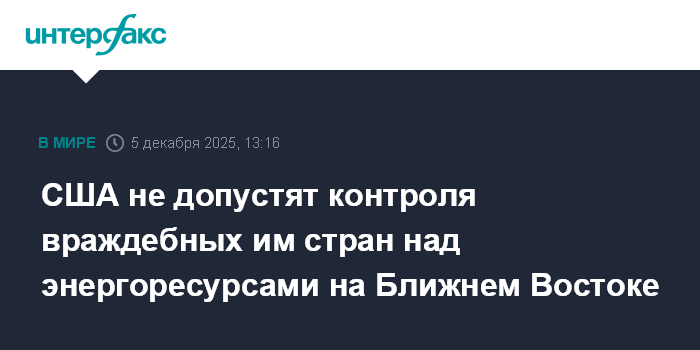 США не допустят контроля враждебных им стран над энергоресурсами на Ближнем Востоке