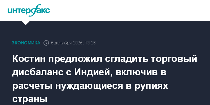 Костин предложил сгладить торговый дисбаланс с Индией, включив в расчеты нуждающиеся в рупиях страны