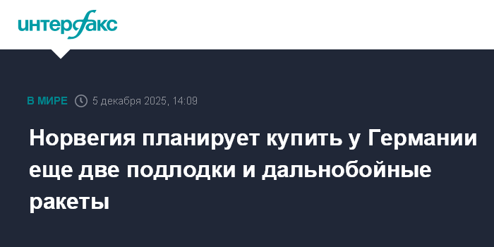 Норвегия планирует купить у Германии еще две подлодки и дальнобойные ракеты