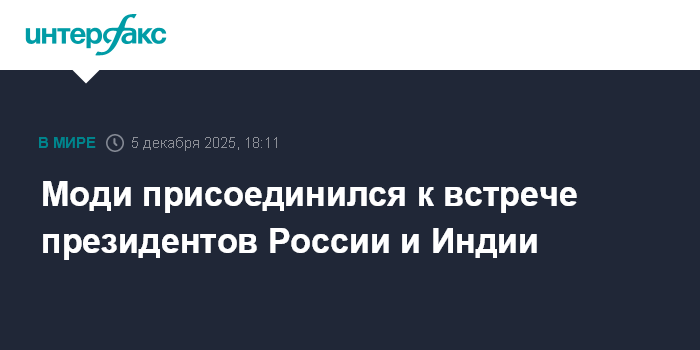Москва. 5 декабря. INTERFAX.RU - Премьер-министр Индии Нарендра Моди присоединился к встрече президентов России и Индии Владимира Путина и Дроупади Мурму в Президентском дворце в Нью-Дели.