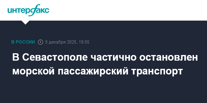 Москва. 5 декабря. INTERFAX.RU - В Севастополе приостановлено движение морского пассажирского транспорта на линии "Радиогорка - Артбухта", а также паромов.