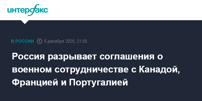 Россия разрывает соглашения о военном сотрудничестве с Канадой, Францией и Португалией