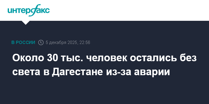 Около 30 тыс. человек остались без света в Дагестане из-за аварии