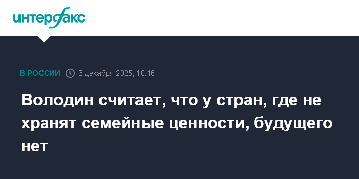 Москва. 6 декабря. INTERFAX.RU - Председатель Госдумы Вячеслав Володин считает, что у стран, где не сохраняют традиционные ценности, нет будущего.