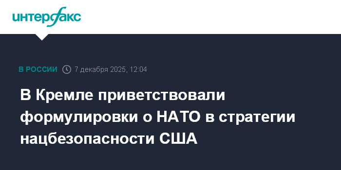 Москва. 7 декабря. INTERFAX.RU - В Кремле приветствуют формулировки в обновленной стратегии национальной безопасности США о дальнейшем нерасширении НАТО, но будут внимательно следить, как документ будет реализовываться на практике.