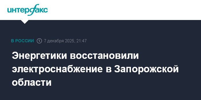 Москва. 7 декабря. INTERFAX.RU - Специалисты восстановили электроснабжение населенных пунктов Запорожской области, сообщил губернатор региона Евгений Балицкий в воскресенье.