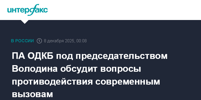ПА ОДКБ под председательством Володина обсудит вопросы противодействия современным вызовам