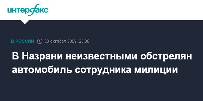 Назрань. 20 октября. ИНТЕРФАКС-ЮГ - В Назрани неизвестными лицами у ворот собственного домовладения обстрелян автомобиль сотрудника ГУВД города.