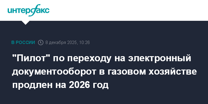 "Пилот" по переходу на электронный документооборот в газовом хозяйстве продлен на 2026 год